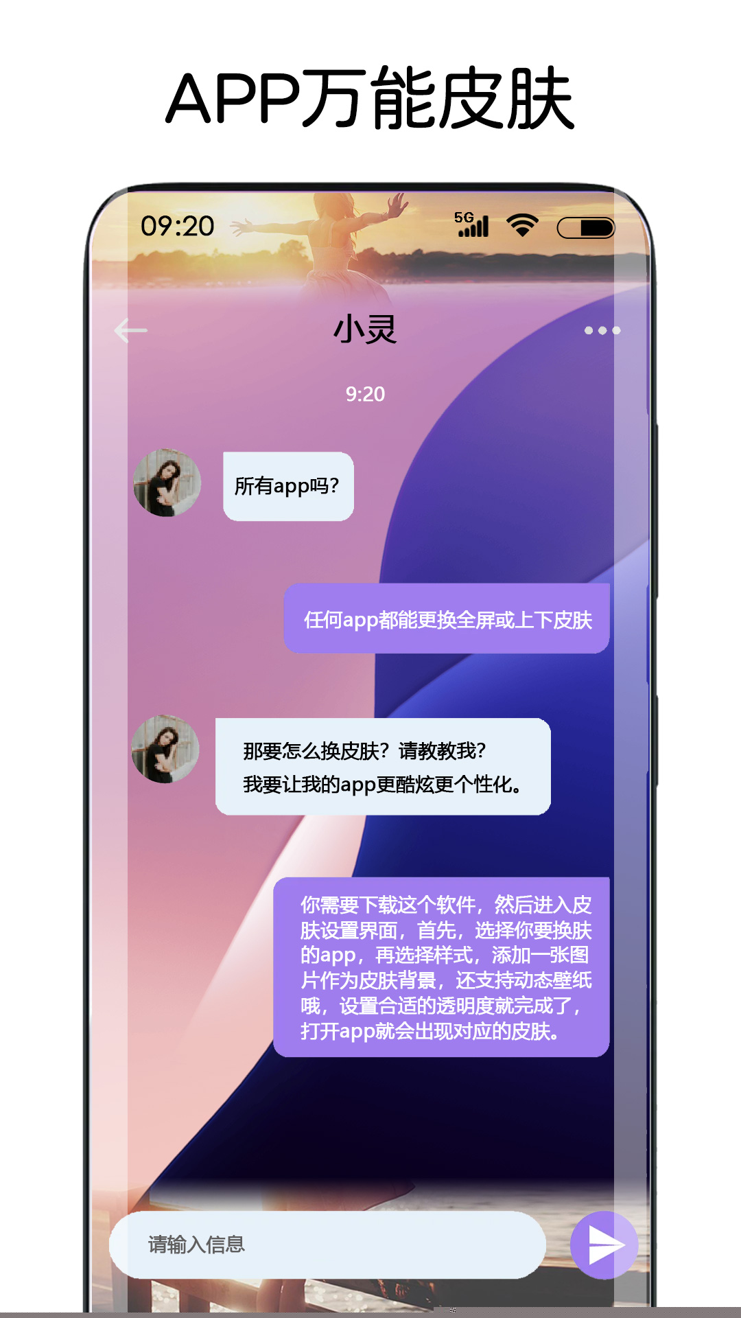 用户可为手机内安装的各类软件独立设置背景皮肤,支持导入个人视频或照片,实现软件界面的完全个性化覆盖。