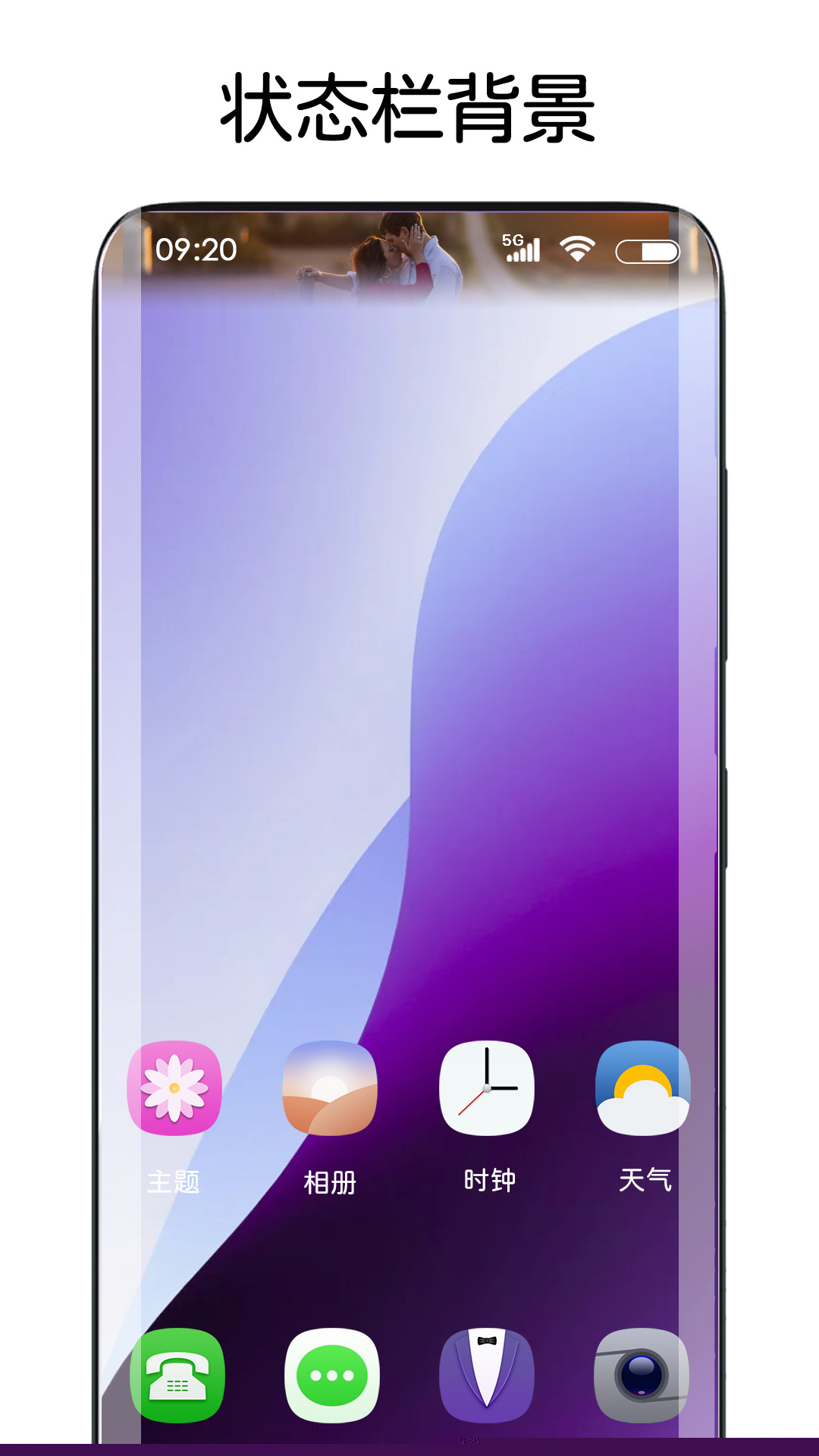 突破状态栏单调设计,允许添加图片或循环播放的视频作为其背景,使设备顶栏区域同样成为彰显个性的画布。