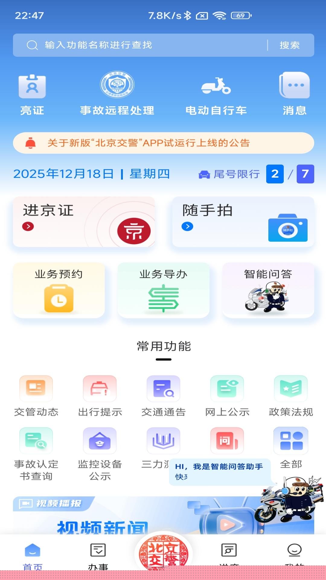 用户无需切换多个平台或前往线下窗口,即可在线完成进京证申办、电动自行车登记、违法查询与处理等高频交管事项,流程清晰,指引明确。