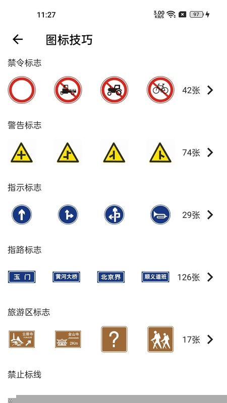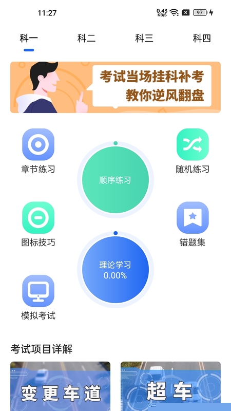按照法规、标志、安全等不同知识模块划分练习单元,支持顺序或随机做题模式。