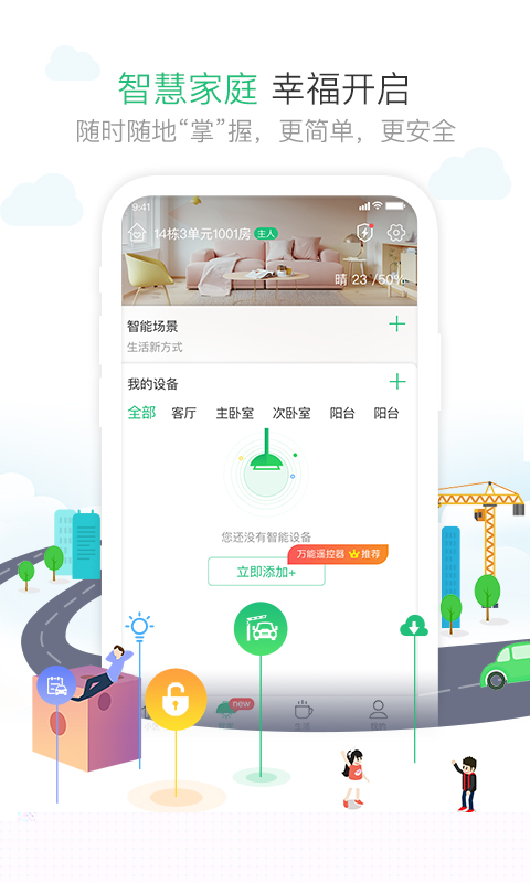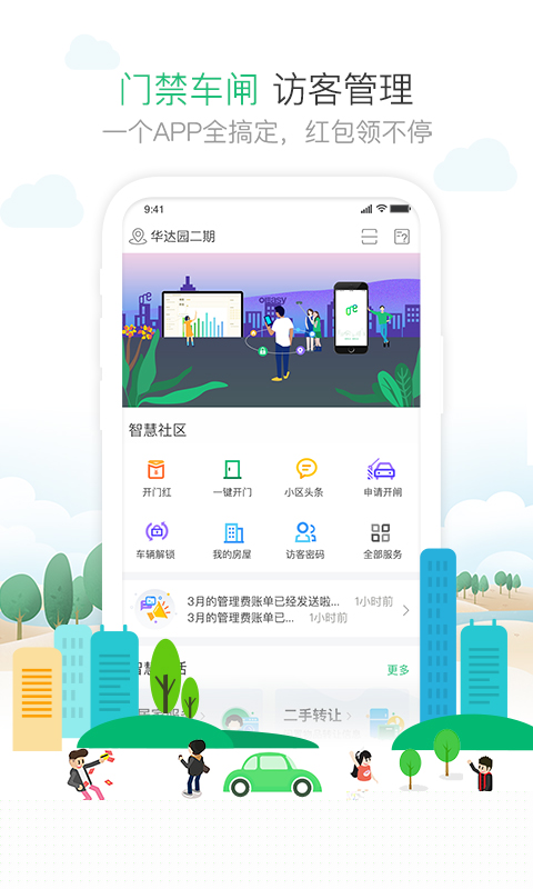 支持智能门禁、访客邀请、包裹代收等与智能硬件联动的安全便捷功能。