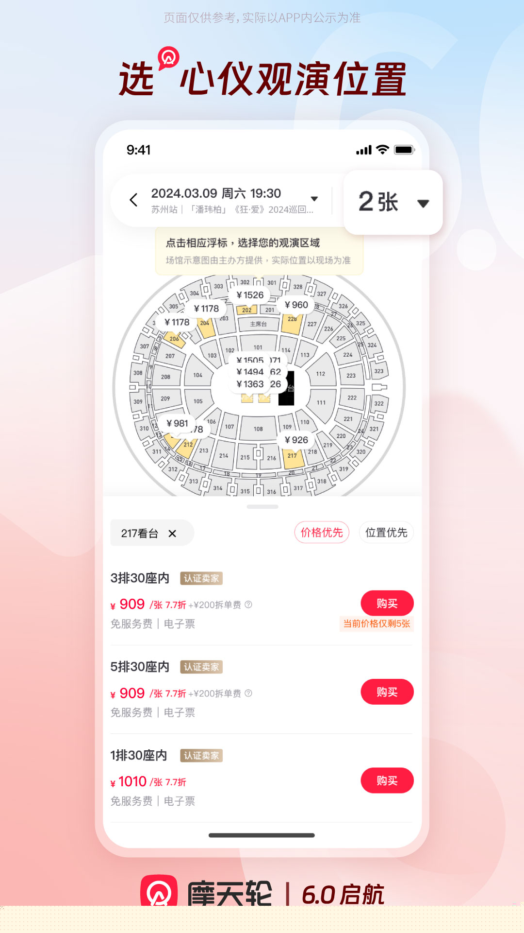 在选定场次后,可以直观查看不同票价区域的座位图,并横向对比各卖家报价,辅助做出最优决策。