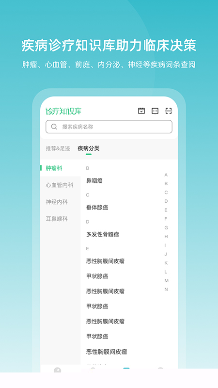 疾病知识库覆盖多学科核心病种,结构清晰,便于快速定位诊疗关键信息。