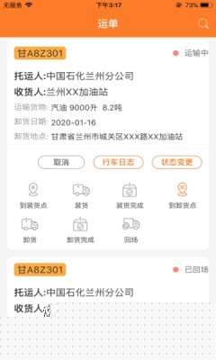 驾押人员可直接创建运输任务,经企业审核后执行,途中可便捷进行到装货点、装货完成、卸货、结束运输等一系列状态变更,形成完整的电子作业记录。