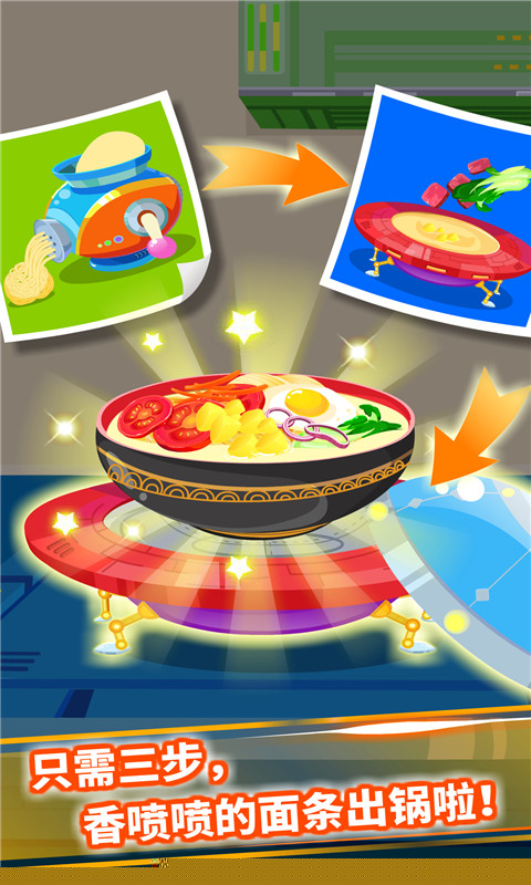 机器人烤箱、飞碟汤锅等特色工具可供使用,每件厨具都拥有独特的科幻外观与互动反馈。