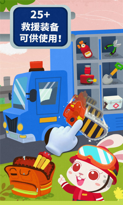 提供超过二十五种专业救援工具供自由选择,如救援绳、电锯、撬棍等,模拟真实救援决策过程,锻炼儿童的工具认知与情境判断力。
