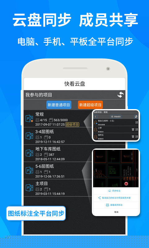 提供快看云盘服务,实现图纸、标注、测量数据的云端存储与多端实时同步。