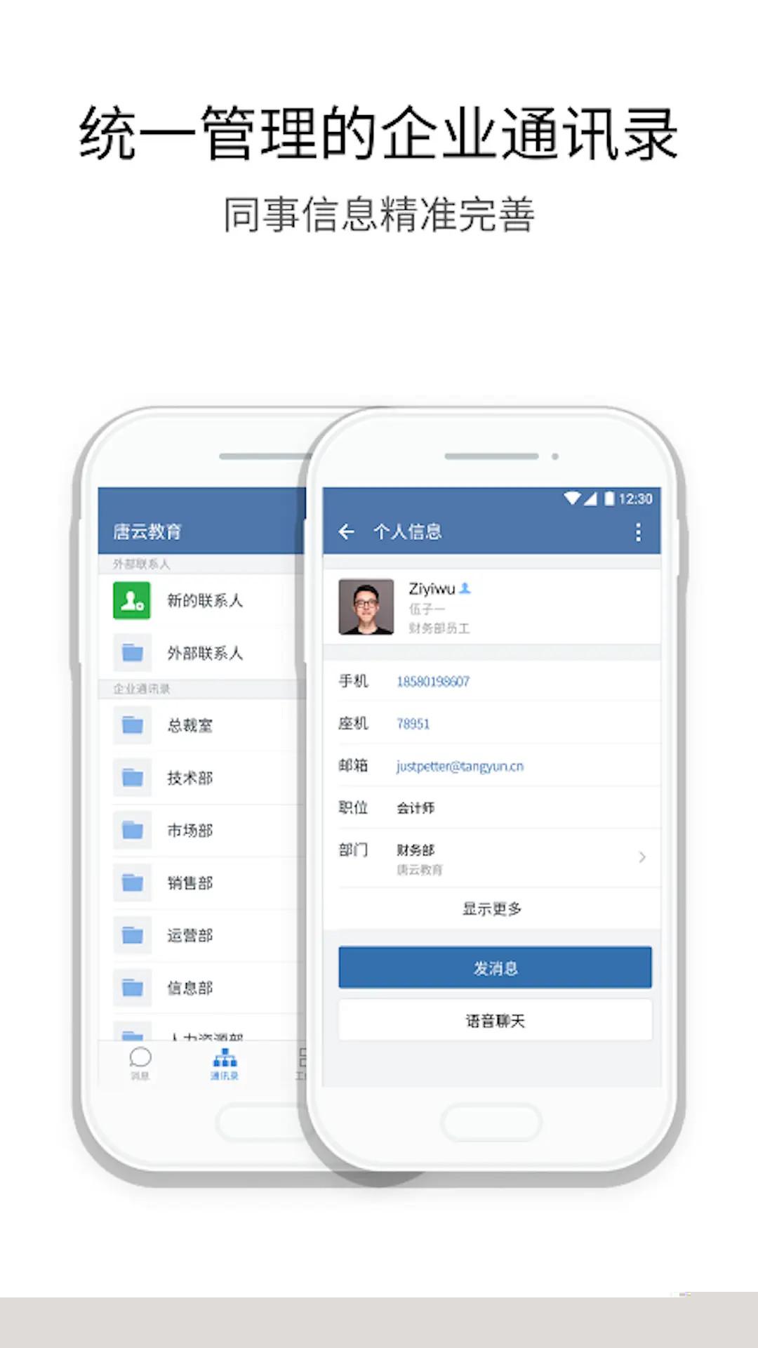 基于企业通讯录,提供文字、语音、文件传输及音视频通话功能,沟通记录云端同步,保障工作连续性。