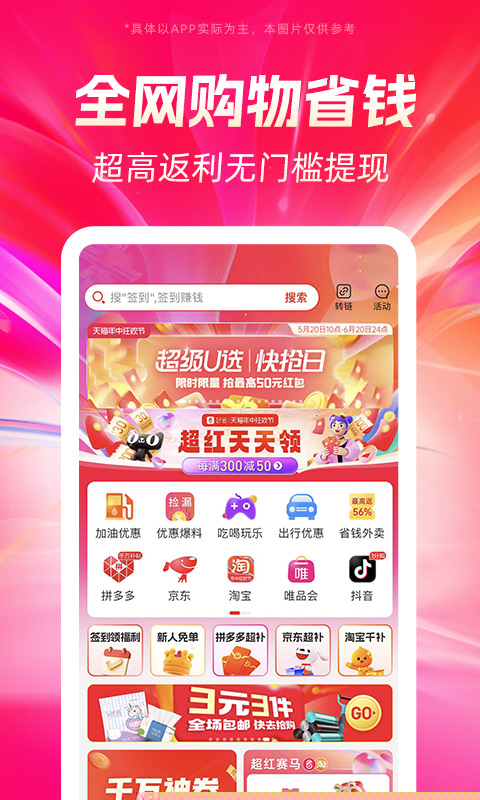 涵盖全品类消费场景,从线上购物到本地生活服务,满足多元化的省钱需求。