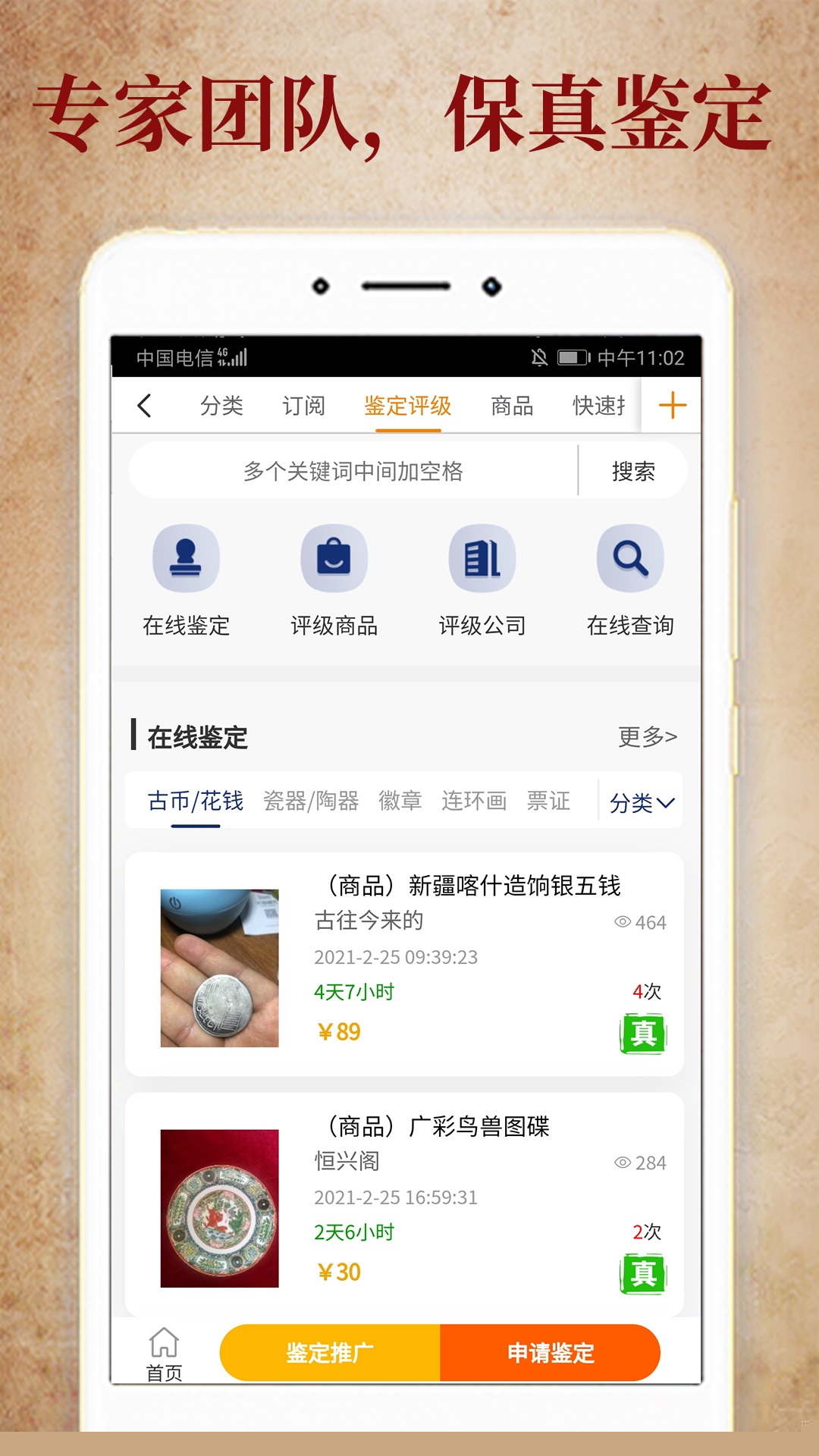 用户可直接在平台内发起藏品鉴定或评级申请,并能便捷获取全国范围内古玩城、拍卖行的最新活动资讯。