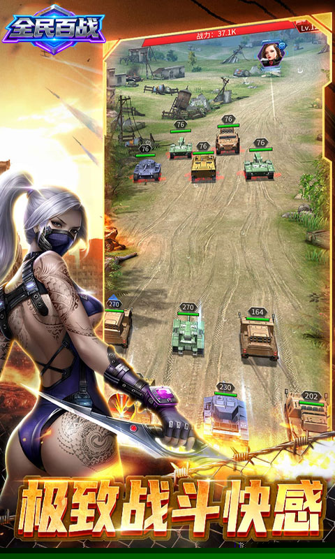 全民百战是一款以军事科技为主题的3D写实风格战争策略手游。由于晶能矿的发掘,地球科技实现了质的飞跃,却也引来了外星文明的入侵,地球陷入了一片废墟之中。作为人类领袖,你将扮演关键角色,亲自指挥和训练自己的队伍;通过在虚拟而真实的战场上自由部署兵力,探索最适合自己进攻或防守的战术。