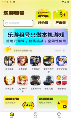 乐游租号是一款专注于提供本机扫码登录服务的游戏账号租赁软件,为用户打造高端、流畅的游戏体验。平台覆盖多款热门端游与手游,通过安全便捷的租号流程,让轻松体验高阶账号。新用户注册可享受免费租号等专属福利,各类优惠活动持续进行,降低游戏体验门槛。