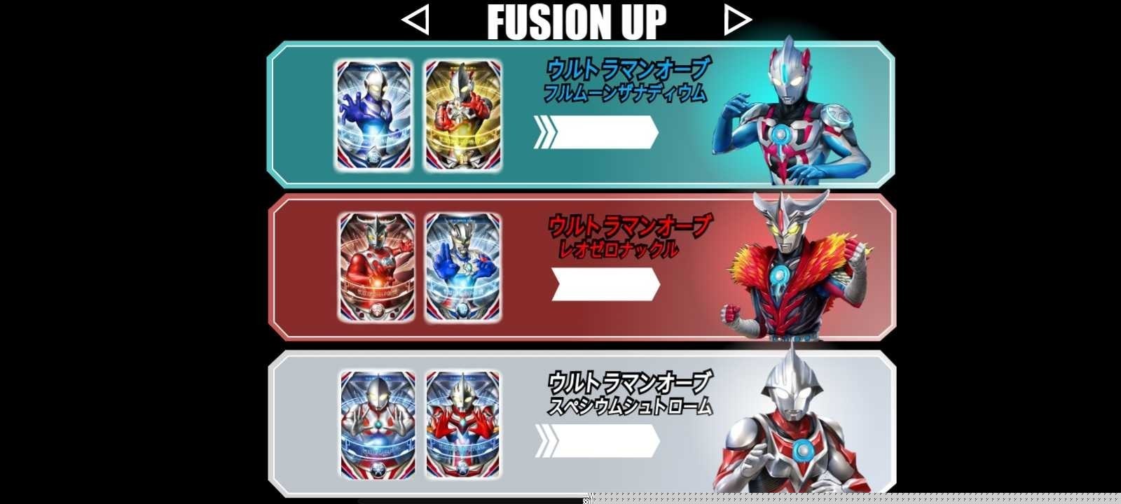 合成公式:游戏中不同的奥特曼卡牌组合可以融合出欧布奥特曼的不同形态,各有独特外观、技能与属性。比如: