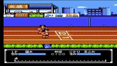 开局时连续按下【方向键前+前+前】,主角便会加速奔跑。在奔跑过程中,适时按下【跳跃键+攻击键】即可触发旋风腿技能!如图1所示,当对手接近时使用这招,若自己处于落后状态,可故意减速并按下【攻击键】破坏跨栏,拾起后投掷击打对手即可轻松取胜!关键在于把握好时机。
