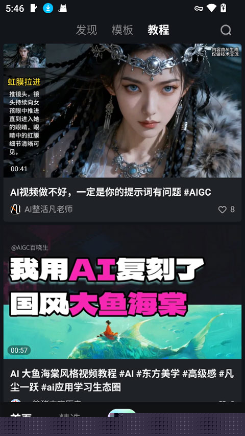 3、app内的社区平台有大量的用户分享ai创作教程,让用户更加精准快速地生成自己喜爱的视频