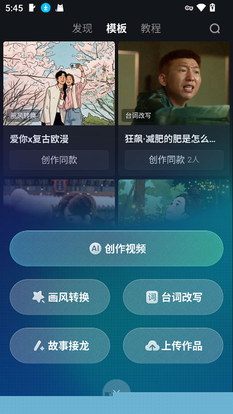 2、创作时可以创作同类视频,也可以修改画风,同时还能够修改台词,用户也可以上传自己的视频进行ai二次编辑创作