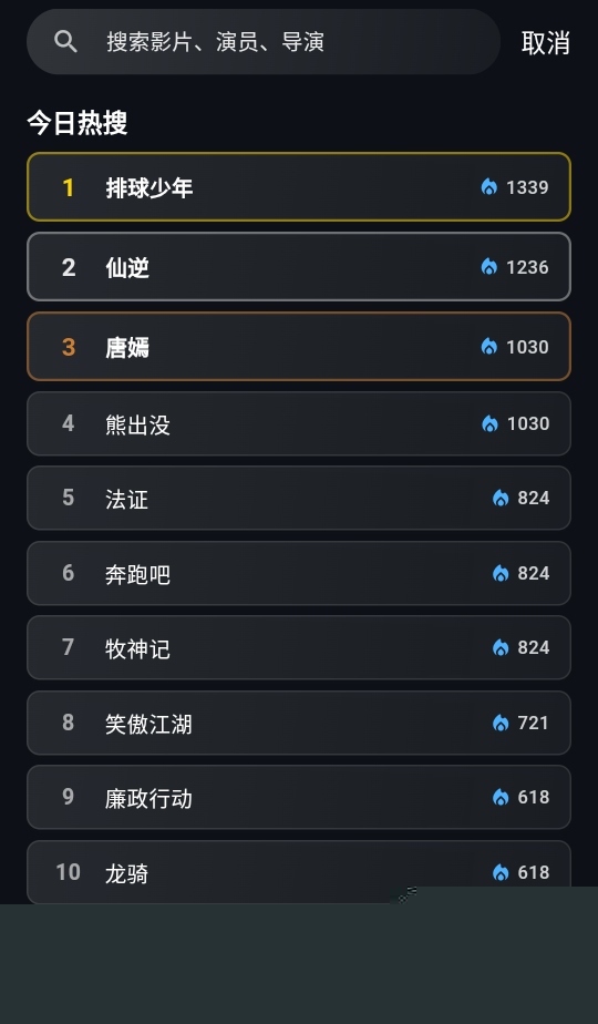 搜索框支持影片名称、演员或导演的关键词输入,能够快速精准地定位到目标内容,搜索结果关联性强,减少了无效浏览时间。