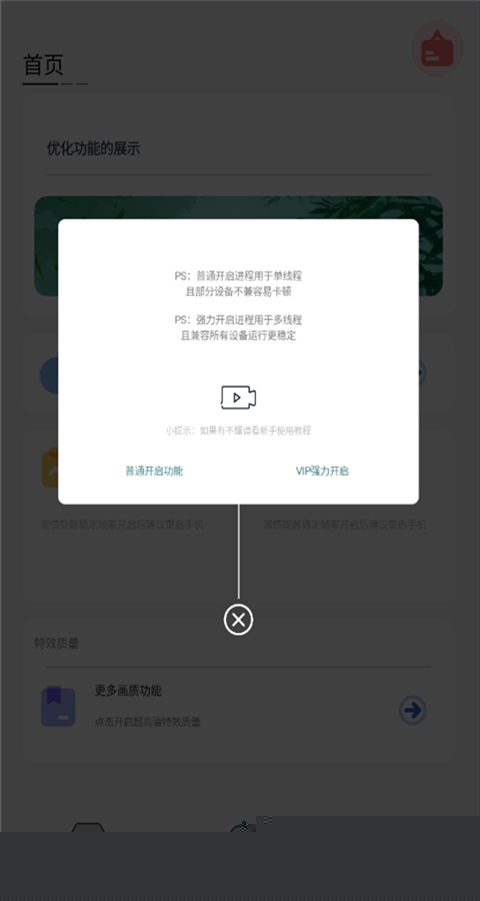 1、进入软件点击开启修改画质功能