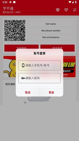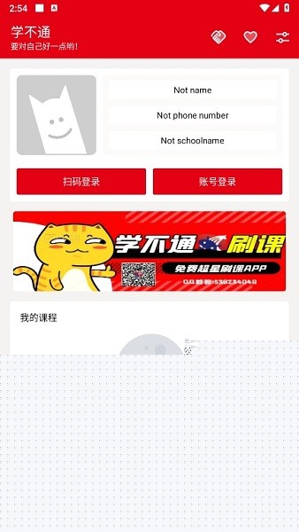 打开软件后,通过QQ一键登录或游客模式进入,再使用扫码或账号密码绑定学习平台账号即可。