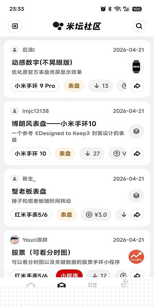 bandbbs米坛社区是一款专为智能穿戴设备用户打造的综合性服务平台,官方软件是连接设备与个性化体验的核心桥梁。无论使用者持有小米手环、华为手表或是其他主流品牌产品,都能在此找到适配的资源与活跃的交流圈。平台汇集了海量由爱好者创作的第三方表盘与实用工具,实现一键下载与便捷管理。内置的社区论坛功能让设备使用疑问、玩机心得与技术探讨得以即时分享与解决,形成了一个互助成长的智能穿戴爱好者专属空间。