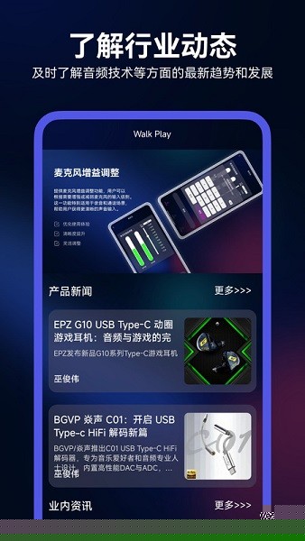 walkplay是一款专注于音频体验优化的安卓软件,专为那些拥有高品质耳机却对复杂声学参数感到困惑的用户设计,无需专业知识,插上耳机即可通过丰富的预设音效(如摇滚、流行、人声)一键切换,瞬间提升听觉感受。内置的均衡器支持自定义调节,用户可实时试听效果,直至找到最满意的声音。无论是普通耳机还是专业设备,walkplay都能像一位音效魔法师,让音乐焕发新生,适配摇滚、流行、民谣等多种风格,满足个性化听觉需求。