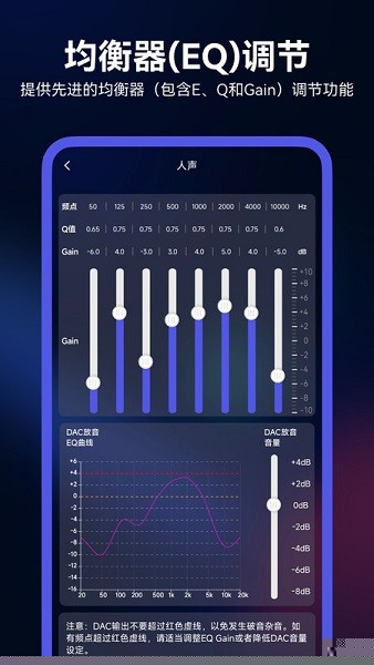 多频段精准调节:从低频到高频覆盖多个频段,满足重低音或高音清脆等个性化需求。