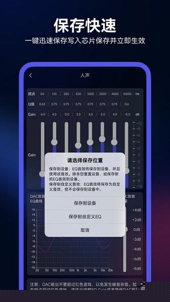 调整频段滑块至满意后,点击保存按钮,输入名称即可创建个人音效配置,下次直接调用。