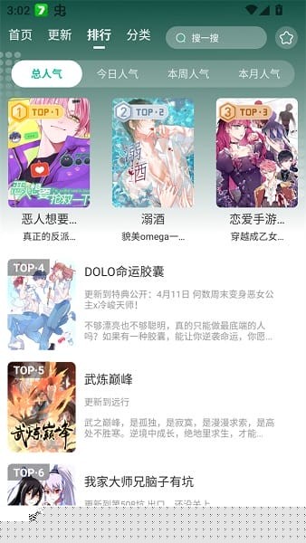 热门榜单实时更新:动态展示当下最受追捧的漫画作品,涵盖多种题材和风格,让用户快速捕捉流行趋势,发现新作佳作。