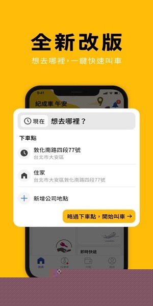 地标快速订车:搜索附近热门景点、店家等地标,以地标位置快速叫车,在台北101附近一键叫车。