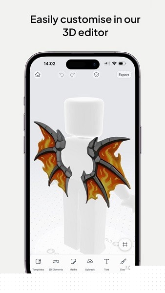 为角色型游戏设计原创皮肤,可添加3D配件和图案,一键导出直接用于游戏。