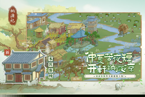 美术风格汲取古典水墨画意境,营造出宁静致远、古朴诗意的世外桃源视觉氛围。