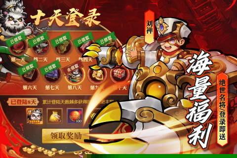 深度角色养成系统,通过升级、进阶、装备强化不断提升武将战力。