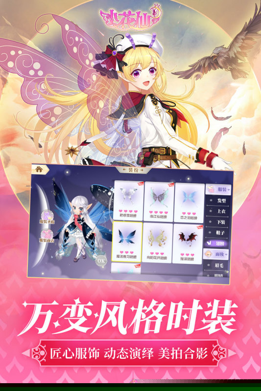 海量的时装与装扮选择,通过收集与搭配,塑造独一无二的花仙个人形象。