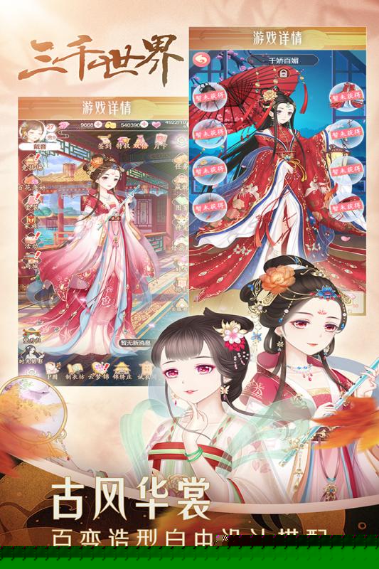精美绝伦的华服与妆容收集体系,上百套服饰配饰可自由搭配,重现古风美学。