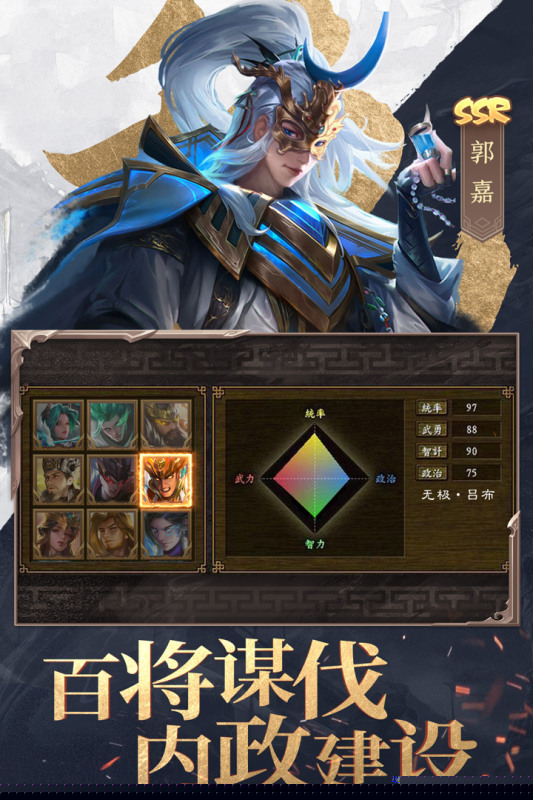 高度还原的三国武将系统,每位名将拥有独特的技能树与历史羁绊,策略搭配千变万化。
