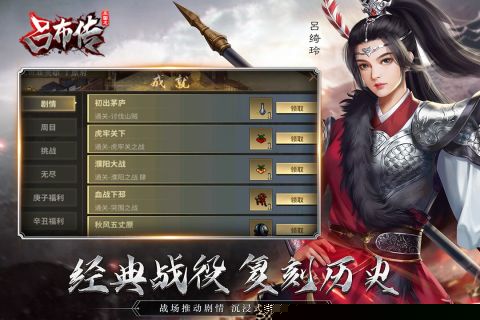 三国志吕布传折扣版是一款以汉末乱世为舞台,聚焦于飞将吕布传奇生涯的策略角色扮演游戏。将亲历从并州崛起、虎牢扬威到白门楼陨落的跌宕历程,在宏大的历史框架下体验截然不同的命运抉择,深度还原了温侯麾下张辽、高顺等名将的风采,更以独特的天命系统重构了三国叙事,让每一次战略部署与阵营选择都充满变数,在熟悉的史诗中开辟出专属于吕布阵营的霸业征途。