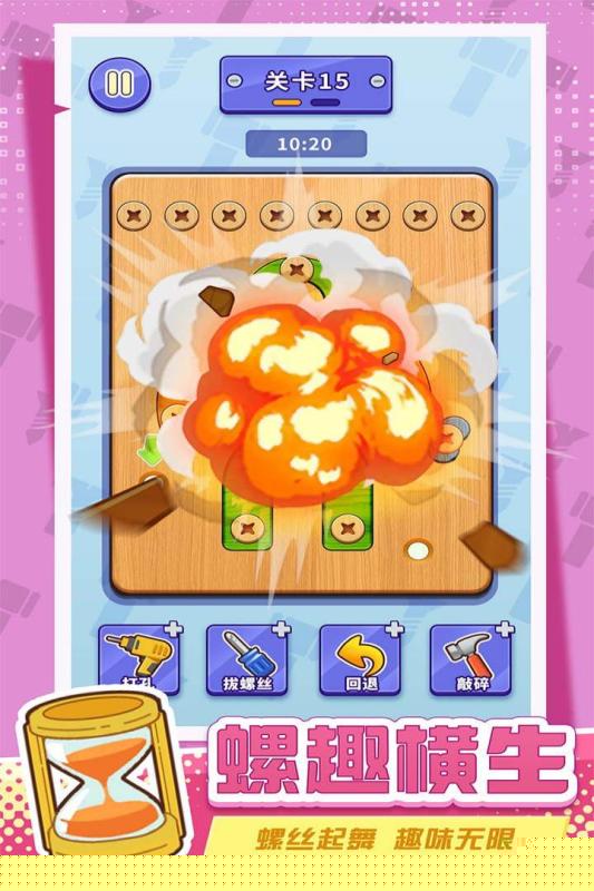 打螺丝拧不住拔钉子小米版是一款将荒诞解压与物理模拟巧妙融合的休闲益智游戏。置身于一个充满各种奇葩故障物品的车间,面对那些拧不住的螺丝和拔不出的钉子,需要运用逆向思维与物理知识,通过点击、滑动等简单操作,以意想不到的方式解决这些令人抓狂的难题,以轻松诙谐的基调,将日常维修中的挫败感转化为充满乐趣的挑战,为带来别具一格的解谜体验。