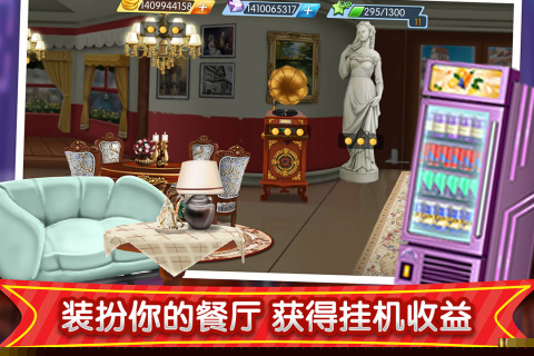 高度自由的餐厅装扮系统,可自定义未来科技、复古蒸汽等多种主题风格。